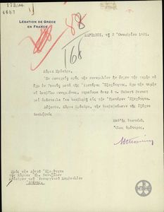 | ΤΙΤΛΟΣ | Επιστολή του Ν.Πολίτη προς το Υπουργείο Εξωτερικών σχετικά με τη συζήτηση που είχε με τον Μπριάν. |