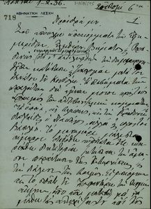 | ΤΙΤΛΟΣ | Επιστολή του Βασίλειου Σκουλά προς τον Ελευθέριο Βενιζέλο σχετικά με την εσωτερική πολιτική κατάσταση, τη στάση της Κυβέρνησης αναφορικά με τις εκλογές και το χρόνο διεξαγωγής τους. |