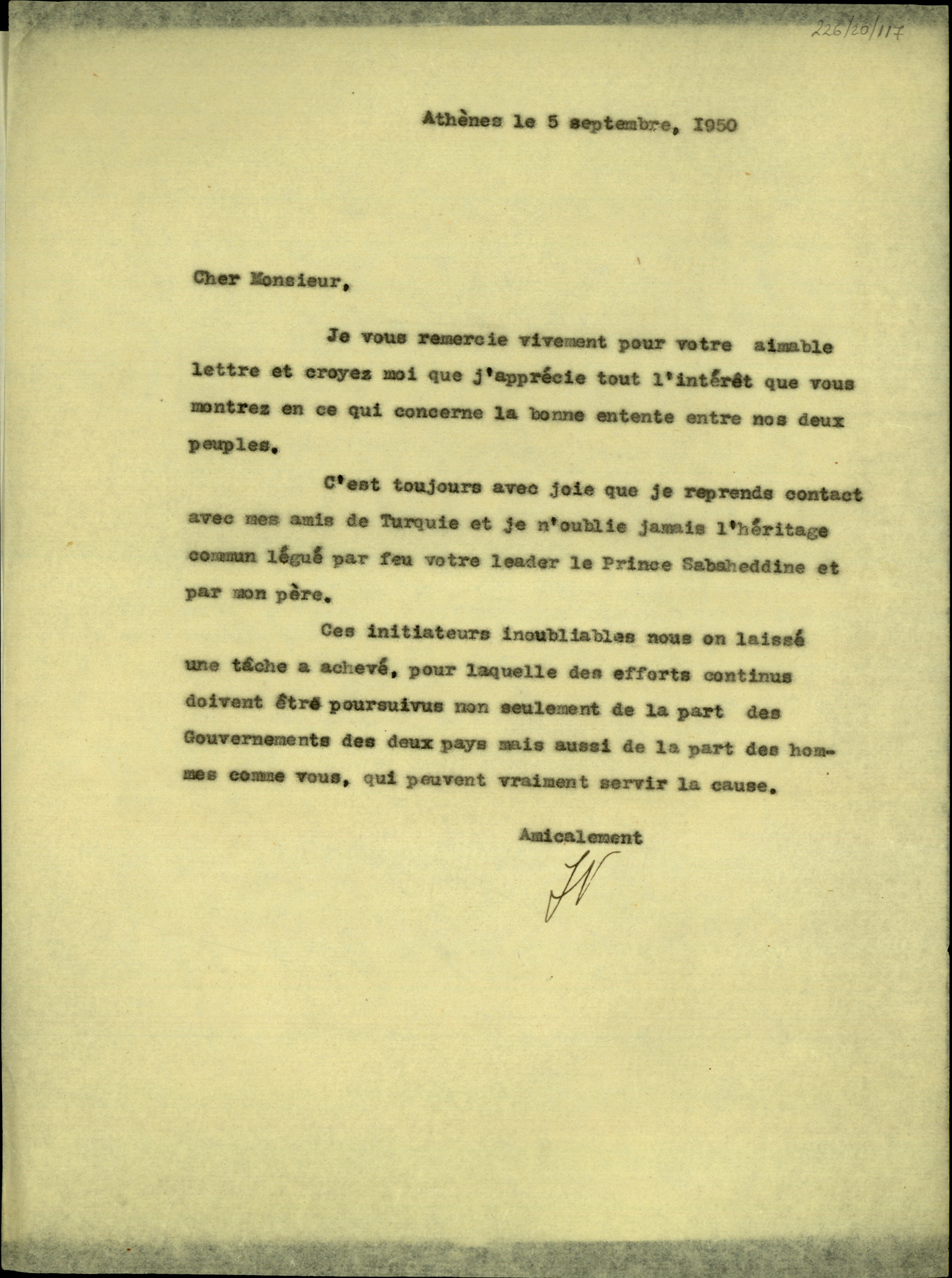| ΤΙΤΛΟΣ | Επιστολή του Σ. Βενιζέλου σχετικά με τις ελληνοτουρκικές σχέσεις. |