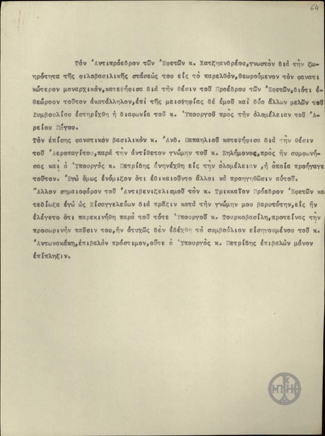 | ΤΙΤΛΟΣ | Σημείωμα σχετικά με την καταψήφιση προαγωγών ανώτατων αξιωματικών. |
