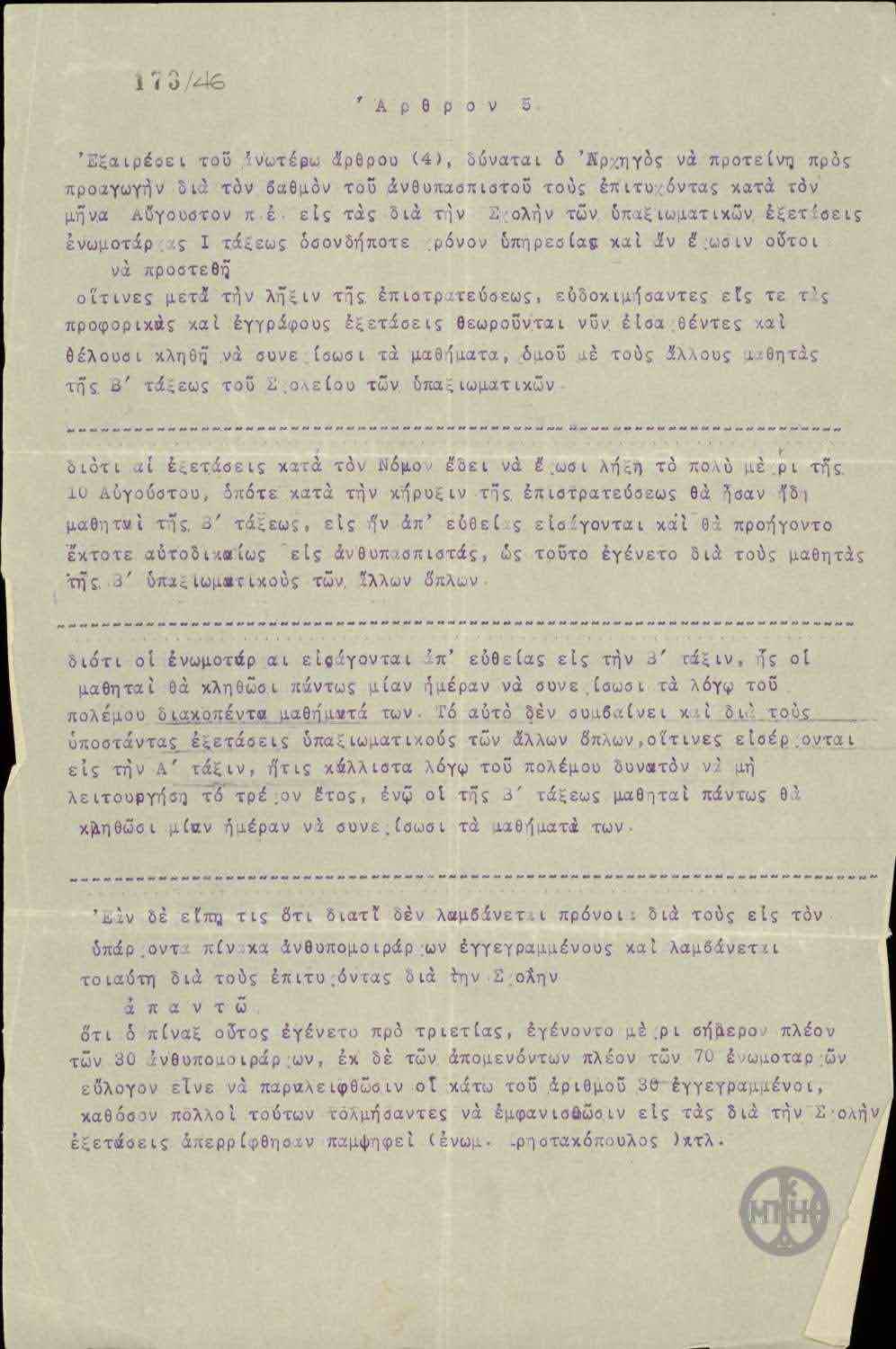 | ΤΙΤΛΟΣ | Άρθρο σχετικά με τον τρόπο εισαγωγής των υποψηφίων στη Σχολή των Υπαξιωματικών. |
