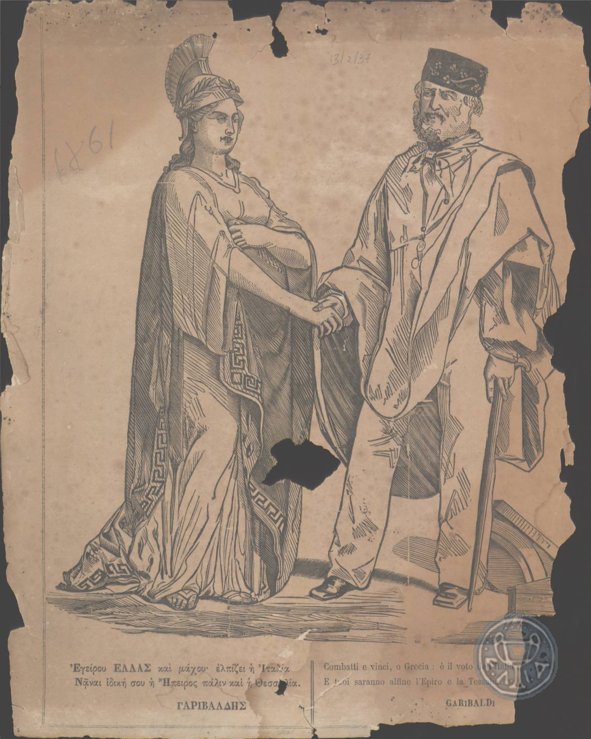 Λιθογραφία της Ελλάδας με τον Garibaldi.