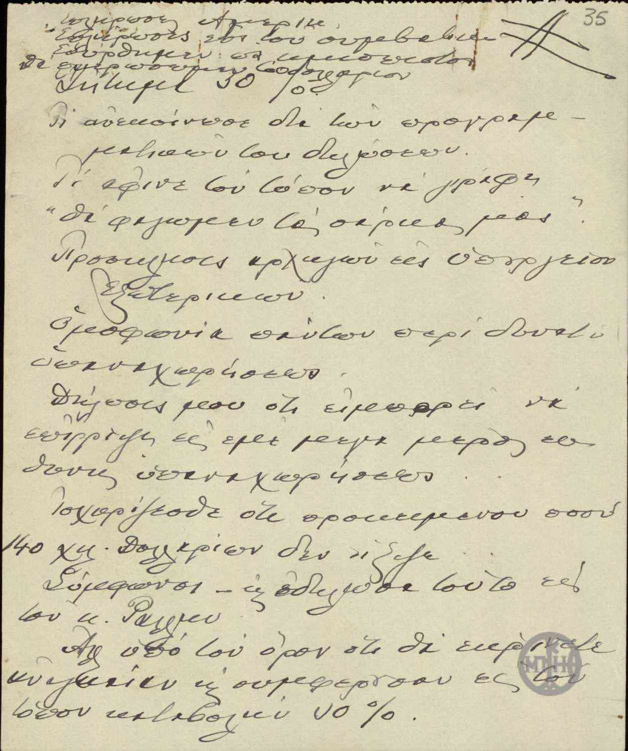 | ΤΙΤΛΟΣ | Σημείωμα του Ε.Βενιζέλου σχετικά με την καταβολή του 30% προς τους ξένους ομολογιούχους. |