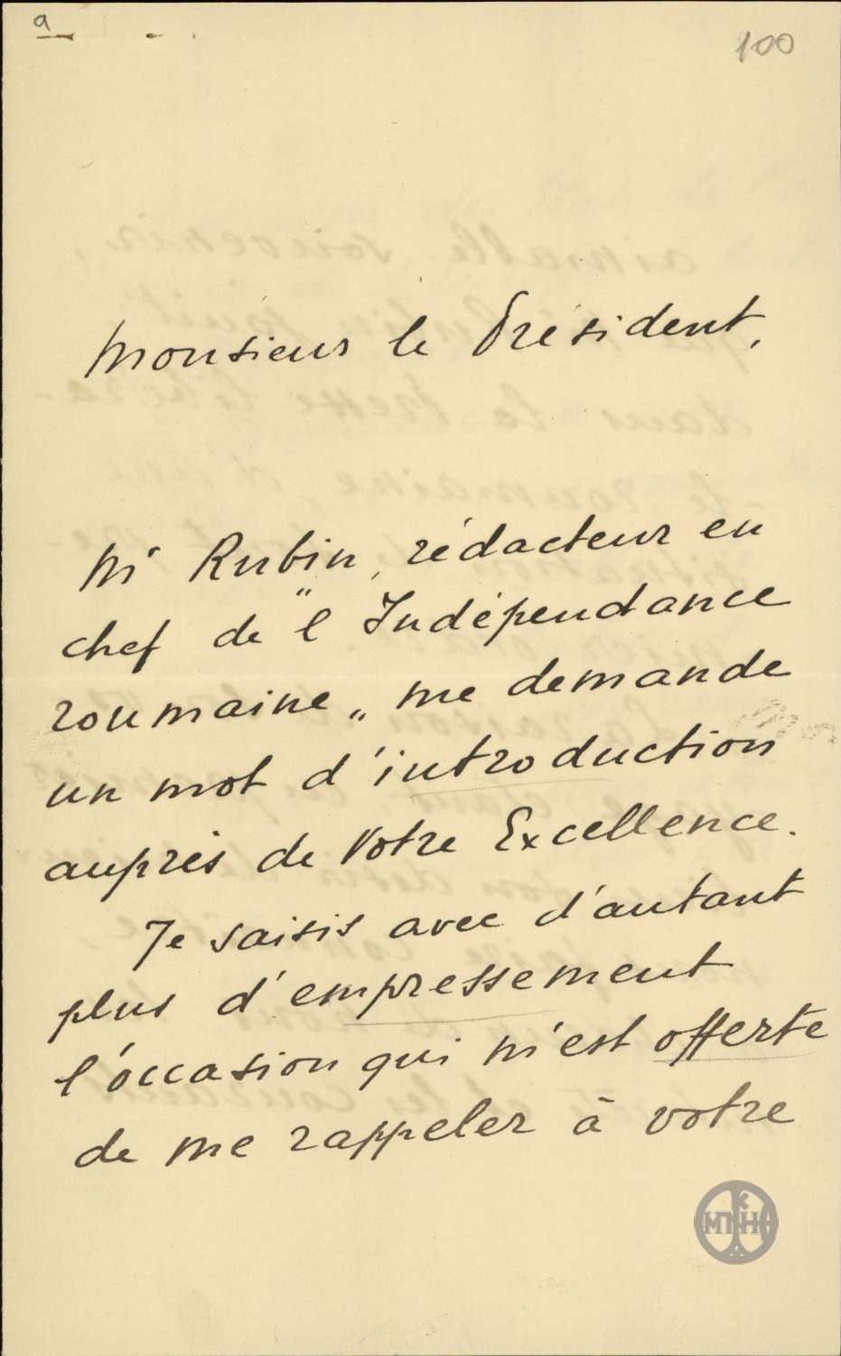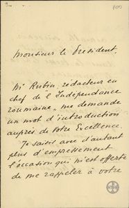 | ΤΙΤΛΟΣ | Επιστολή του J.Bratianu προς τον Ε.Βενιζέλο σχετικά με τις προθέσεις Ρουμάνου δημοσιογράφου για τη σύσφιξη των σχέσεων των ανατολικών κρατών. |