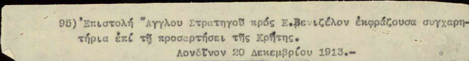 | ΤΙΤΛΟΣ | Επιστολή του Στρατηγού G.Eqerten προς τον Ε.Βενιζέλο, με την οποία τον συγχαίρει για την προσάρτηση της Κρήτης. |