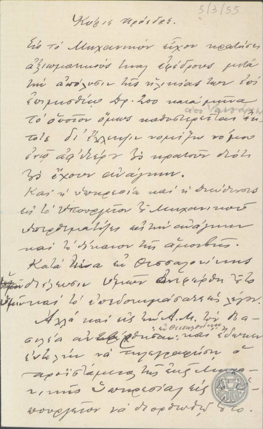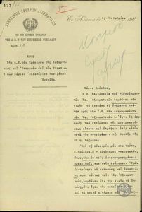 | ΤΙΤΛΟΣ | Επιστολή του Α.Γρίβα προς τον Ε.Βενιζέλο σχετικά με το ζήτημα του προβιβασμού των αξιωματικών του ελληνικού στρατού επί διακεκριμένη πράξη. |