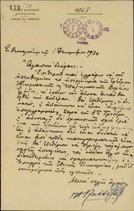 | ΤΙΤΛΟΣ | Επιστολή του Π.Α.Κουτρέλη, Προέδρου του Συνδέσμου Εφέδρων Αξιωματικών, προς τον Ε.Βενιζέλο σχετικά με το ζήτημα της μονιμοποίησης των εφέδρων Αξιωματικών. |