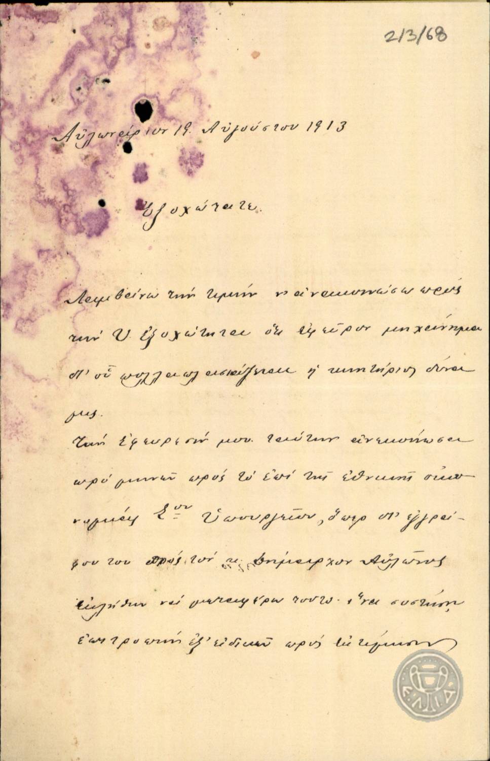 | ΧΡΟΝΟΛΟΓΙΑ | 1913 Αύγουστος 19 |