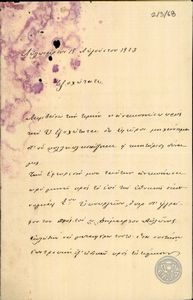 | ΤΙΤΛΟΣ | Επιστολή του Γ.Π.Ζέρβα προς τον Ε.Βενιζέλο σχετικά με την εφεύρεση μηχανήματος. |