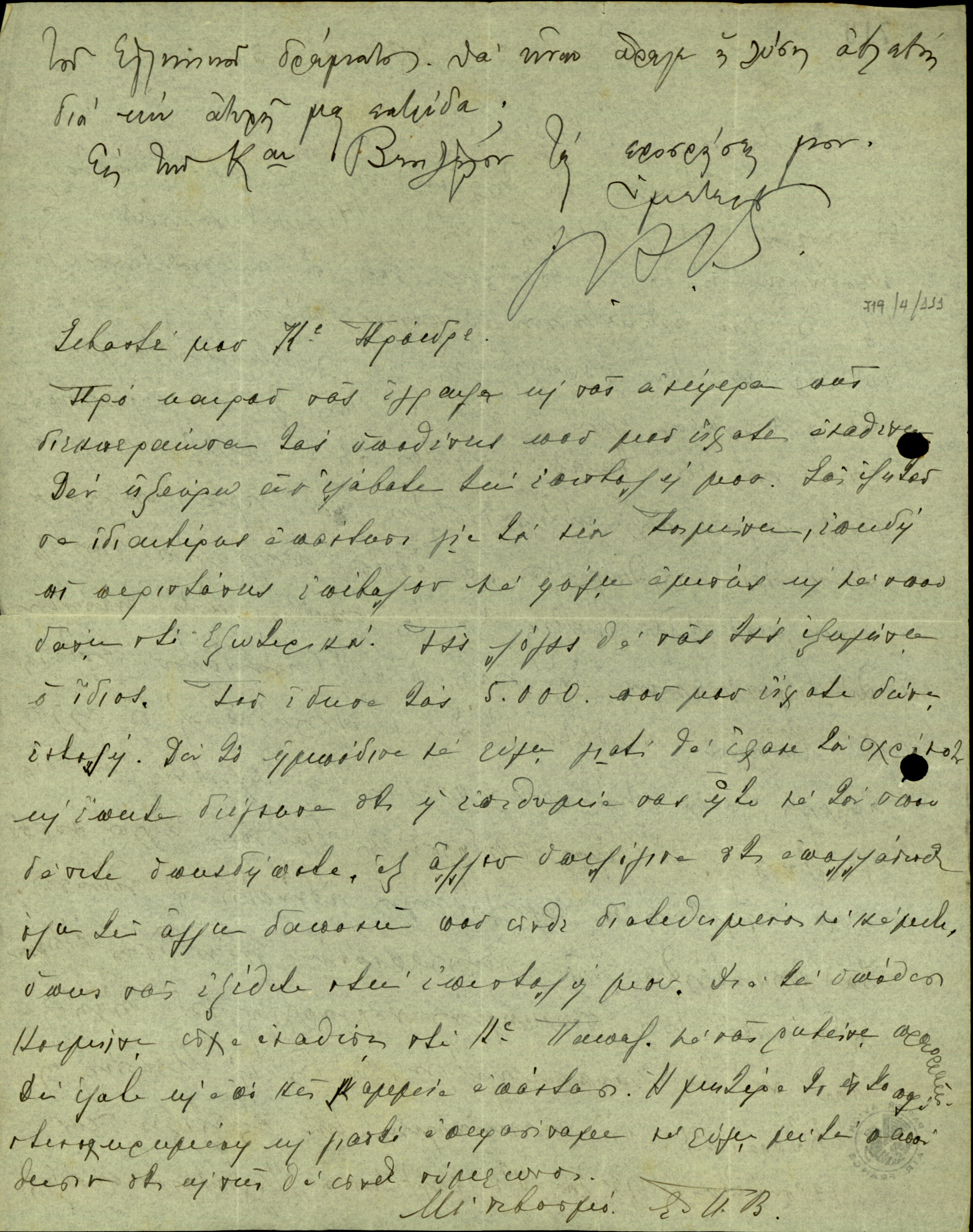 | ΤΙΤΛΟΣ | Επιστολή του Ε.Βενιζέλου σχετικά με την αποστολή χρηματικού ποσού. |