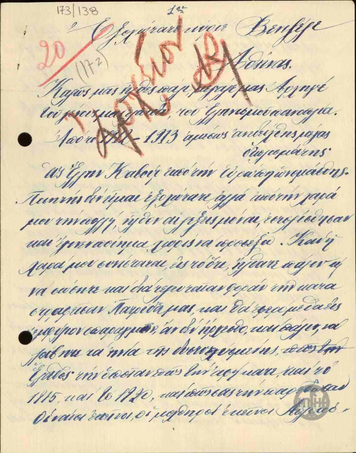 | ΤΙΤΛΟΣ | Αίτηση του εργάτη της Γαλλικής Εταιρείας Λαυρίου προς τον Ε. Βενιζέλο με οικονομική του υπόθεση. |