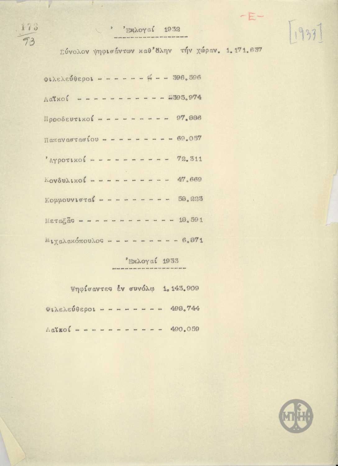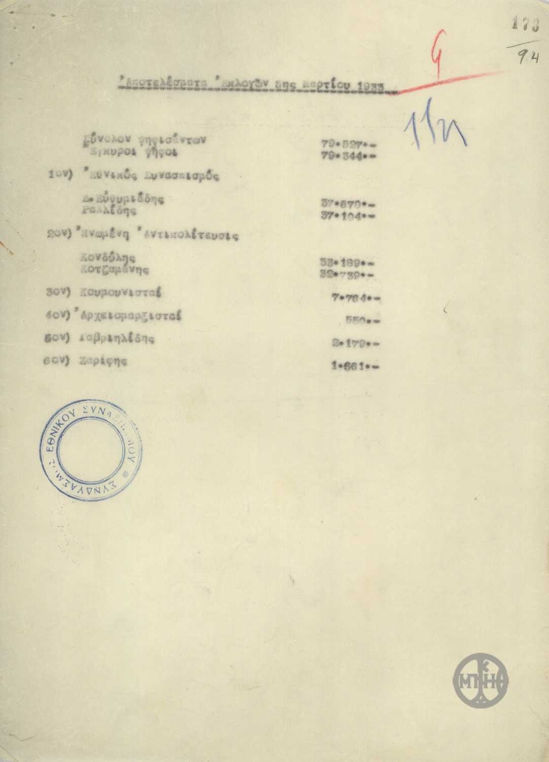 | ΤΙΤΛΟΣ | Αποτελέσματα εκλογών της 5ης Μαρτίου 1933. |
