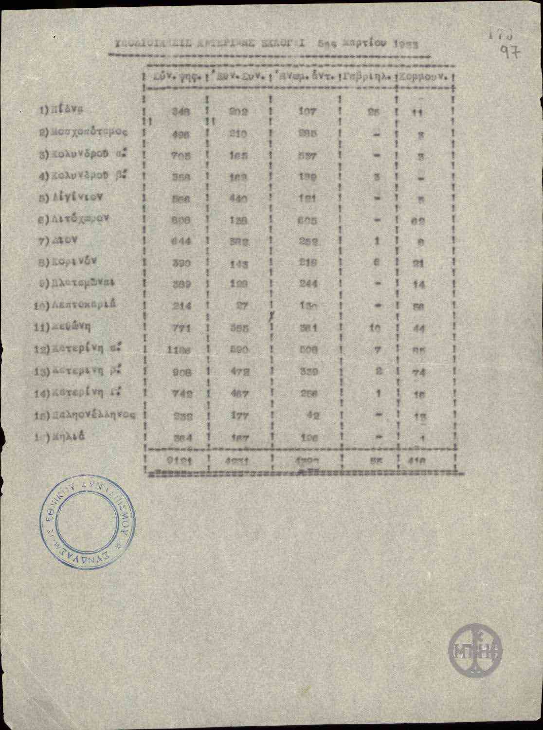 | ΤΙΤΛΟΣ | Αποτελέσματα εκλογών της 5ης Μαρτίου 1933 στην υποδιοίκηση Κατερίνης. |