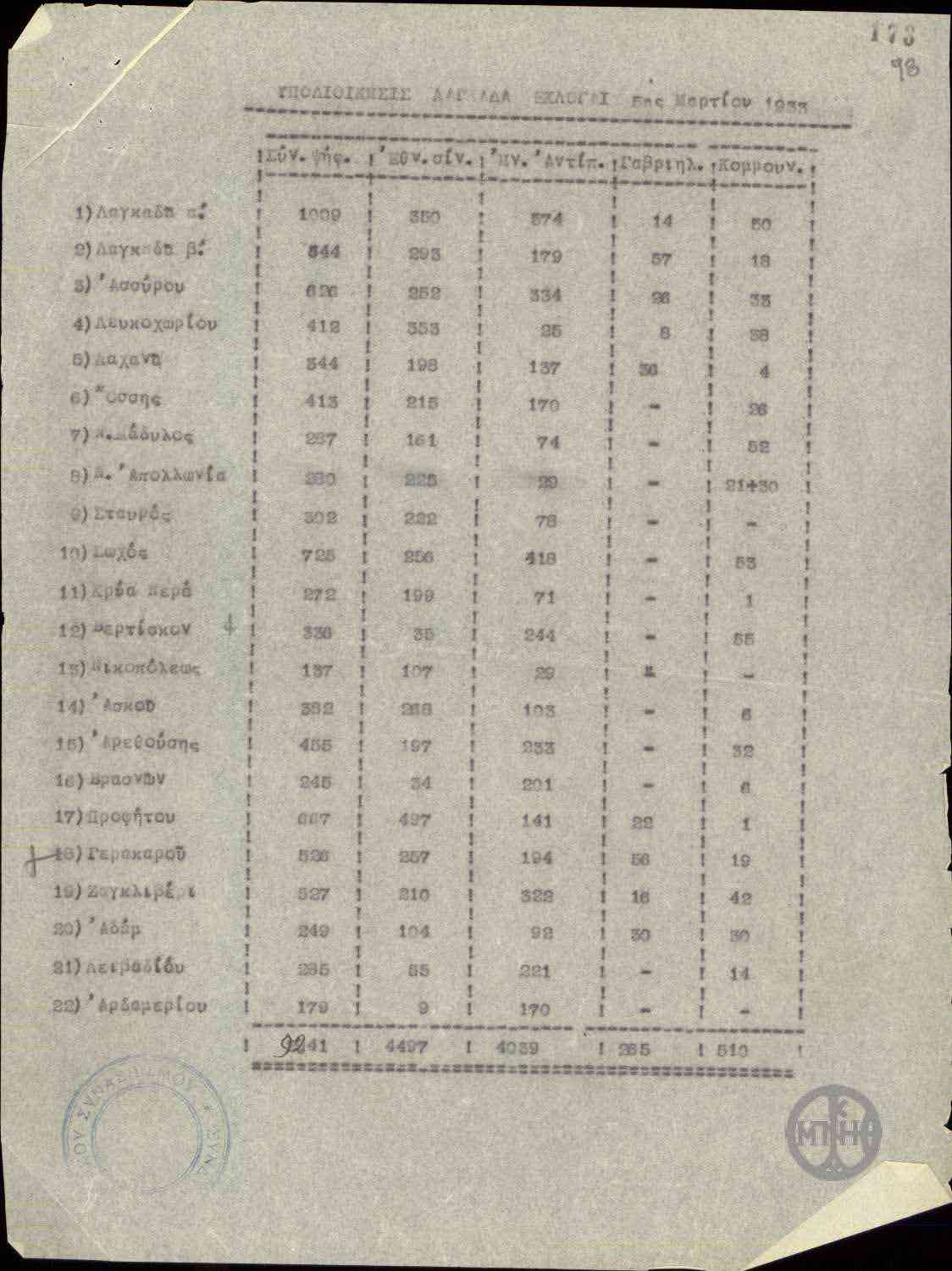 | ΤΙΤΛΟΣ | Αποτελέσματα εκλογών της 5ης Μαρτίου 1933 στην υποδιοίκηση Λαγκαδά. |
