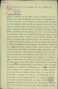 | ΤΙΤΛΟΣ | Ψήφισμα των εν Αθήναις καταθετών χρημάτων και χρεογράφων της πτωχεύσασης Τραπέζης Κοσμαδοπούλου προς τον Ε. Βενιζέλον. |