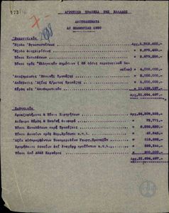 | ΤΙΤΛΟΣ | Πίνακας με τα έσοδα και τα έξοδα της Αγροτικής Τράπεζας της Ελλάδας στο 1ο εξάμηνο του 1930 και τις προβλέψεις για το 2ο εξάμηνο. |
