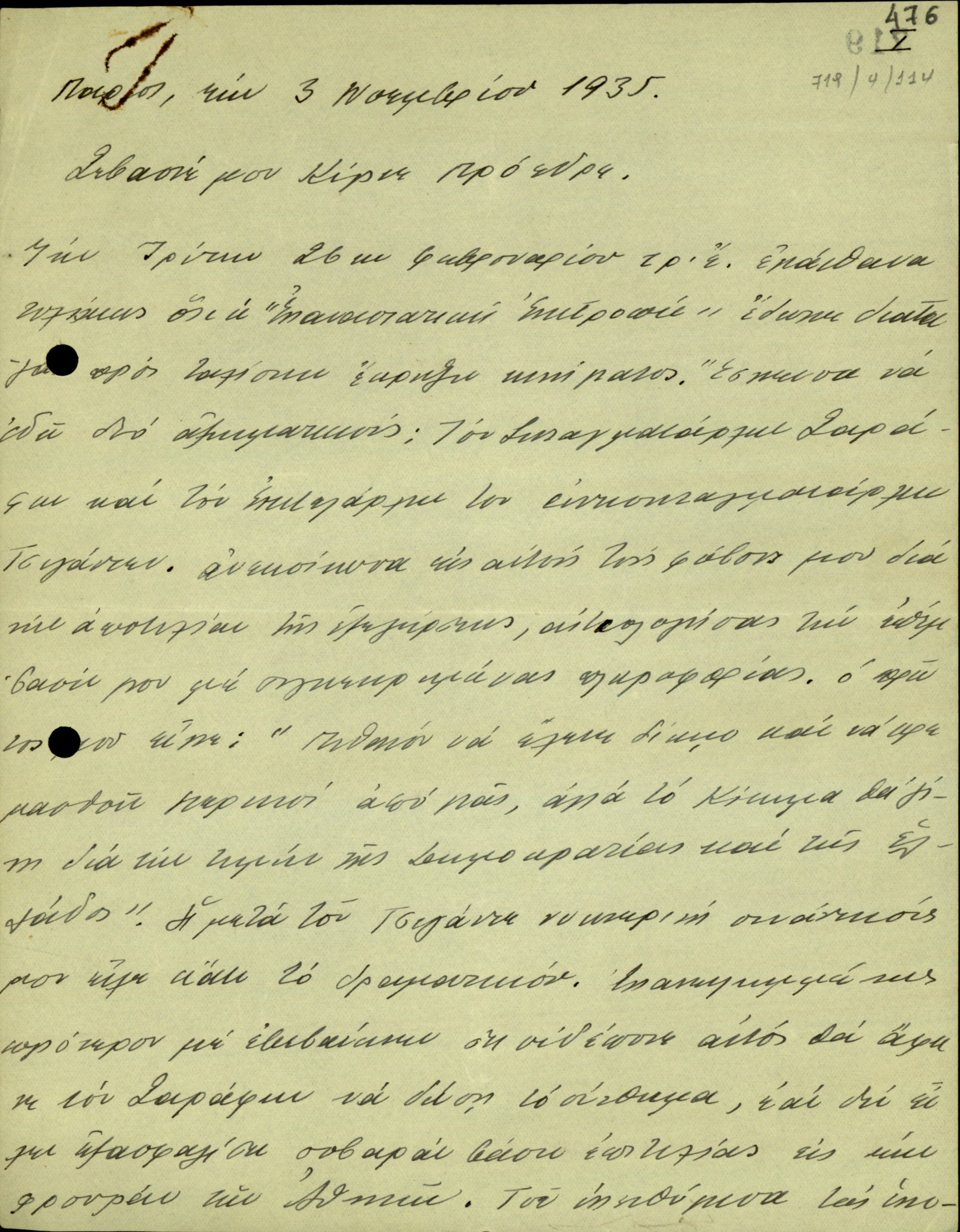 | ΤΙΤΛΟΣ | Επιστολή του Γεωργίου Βεντήρη προς τον Ελευθέριο Βενιζέλο σχετικά με το κίνημα του 1935. |