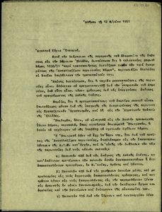 | ΤΙΤΛΟΣ | Επιστολή του Σ. Βενιζέλου σχετικά με την τροποποίηση του νόμου 1650/51 "Περί τροποποιήσεως διατάξεων τιμών των περί διαχειρίσεως της Ανταλλαξίμου περιουσίας Νόμων" |