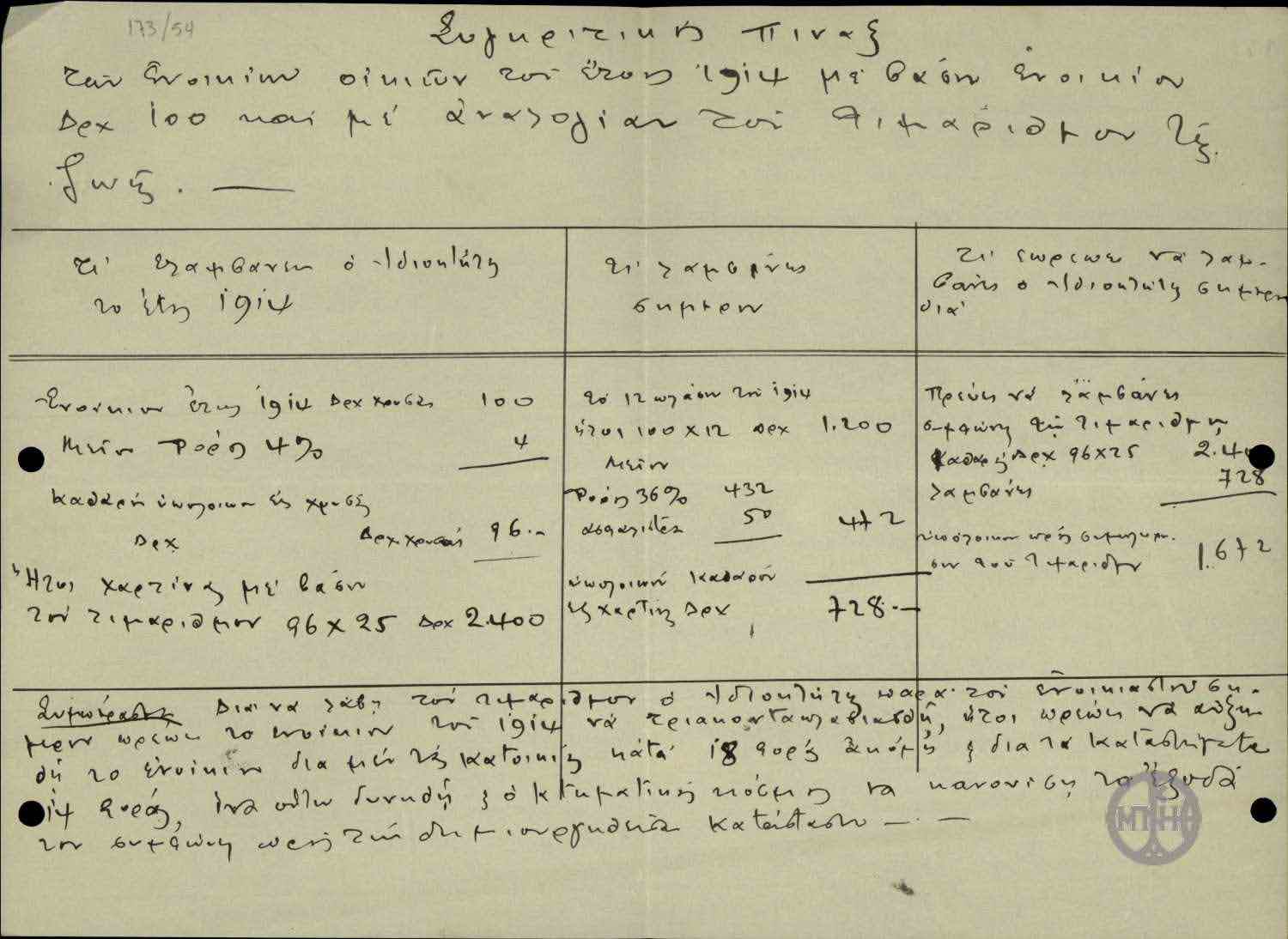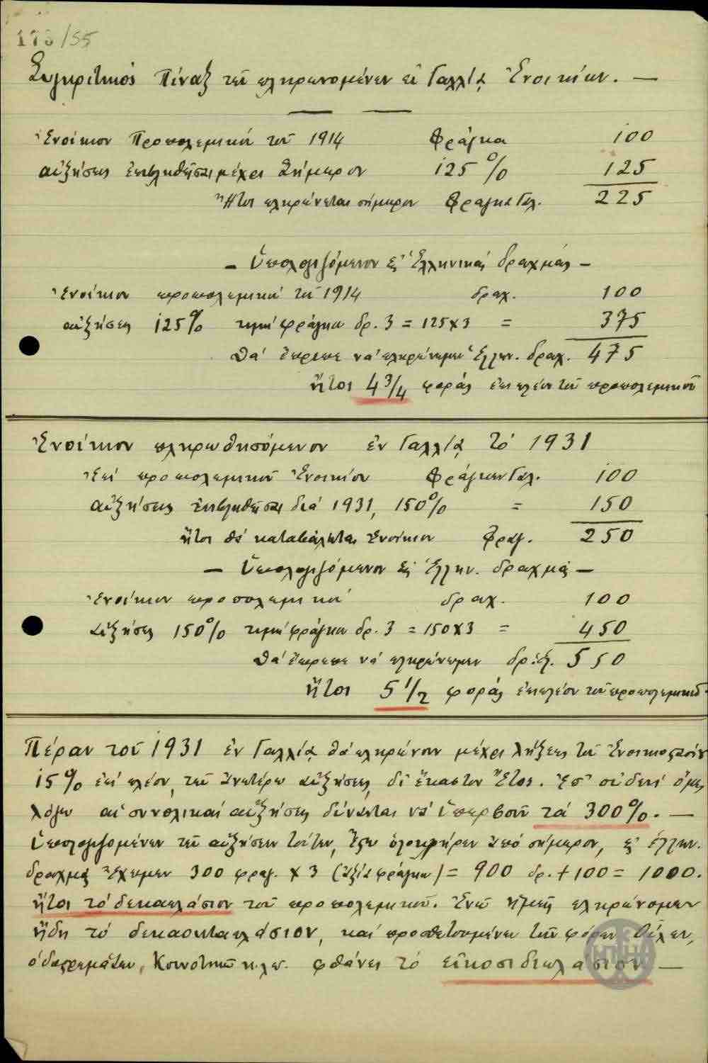 | ΤΙΤΛΟΣ | Πίνακας με τίτλο: Συγκριτικός Πίναξ του ενοικίου οικιών έτους 1914 με βάσιν ενοικίου δρχ.100 και με αναλογίαν του τιμαρίθμου της ζωής. |